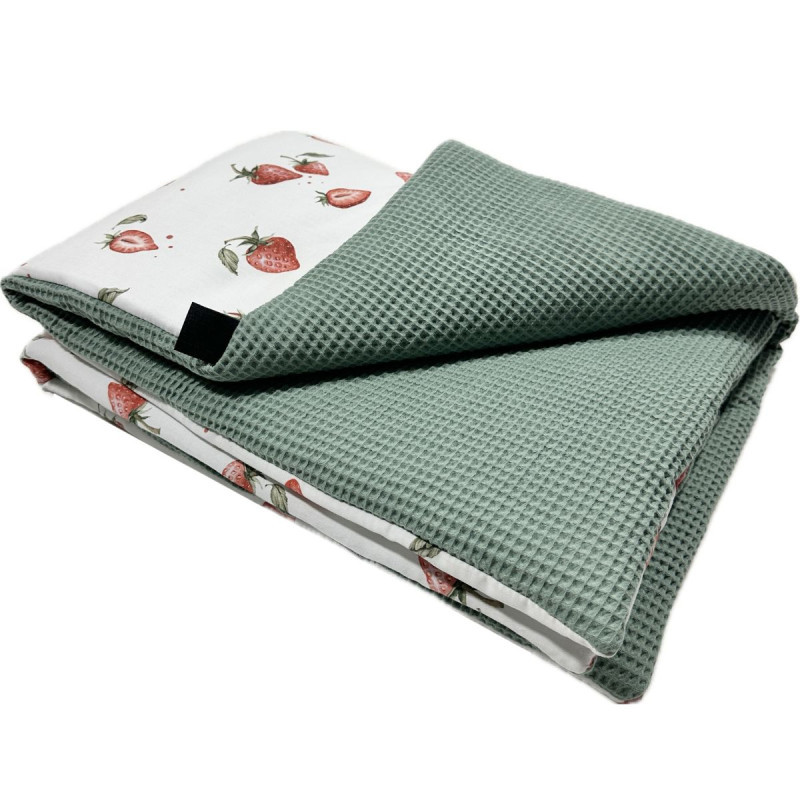 Preschooler Set Blanket 100x130cm + Pillow 40x60 Waffle Basil Green I Love Strawberry