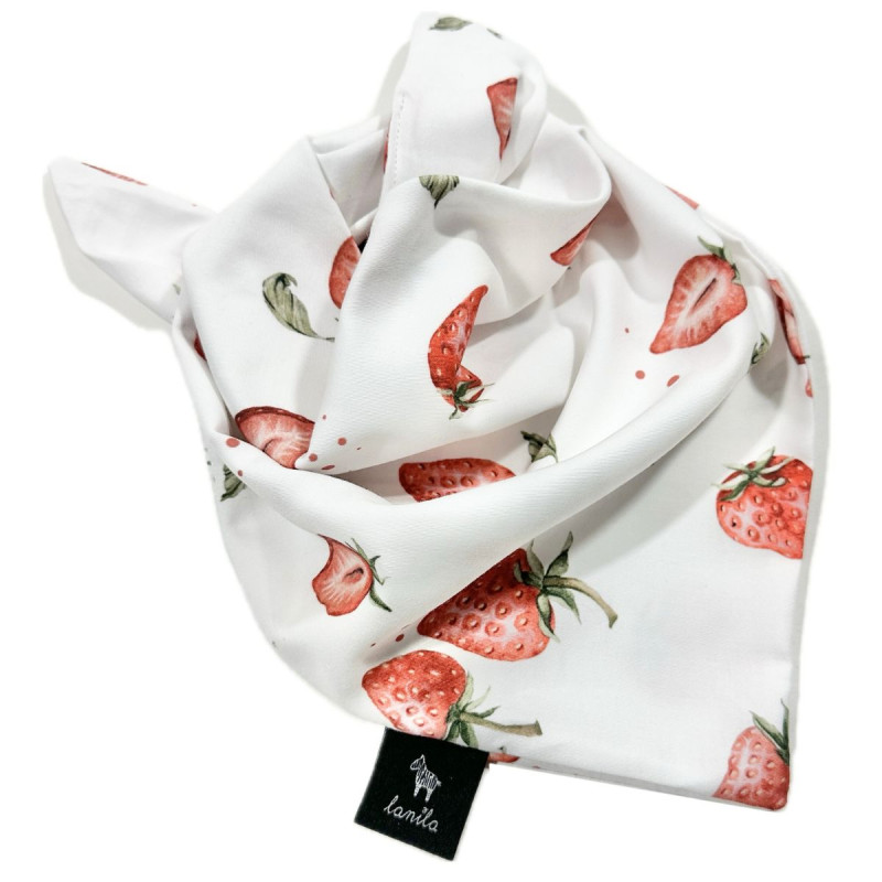 Z uniwersalną chustą na głowę marki Lanila, każde dziecko będzie gotowe na długie spacery. Chusta I Love Strawberry o wymiarach 30x72 cm stanowi doskonałą ochronę przed wiatrem lub palącym słońcem, będąc jednocześnie wyjątkowo piękną ozdobą.