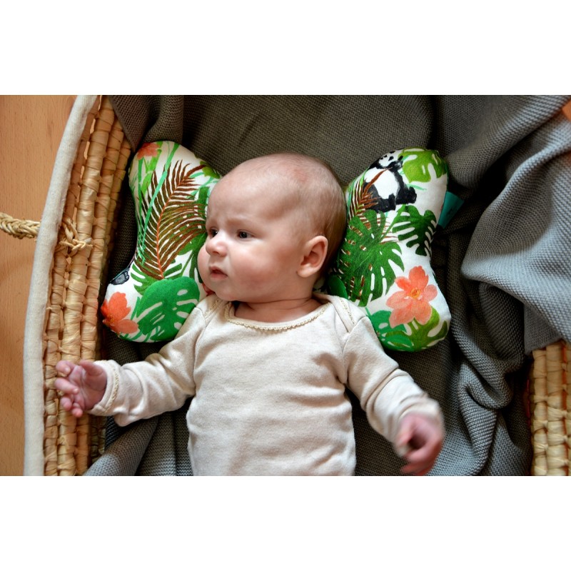 Ergonomiczny kształt i przemyślany projekt to atuty, które sprawiają, że dziecięca poduszka Motylek zapewnia wygodę i spokojny sen nawet w czasie samochodowych przejażdżek oraz spacerów z wózkiem.