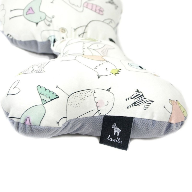 Unikatowa poduszka dziecięca Motylek w rozmiarze 22x37cm stworzona została w celu zapewnienia dzieciom wygody i ochrony główki przed mikro-wstrząsami. Dopasowująca się do szyi poduszeczka to niezbędne wyposażenie w czasie podróży samochodem oraz spacerów w wózku.