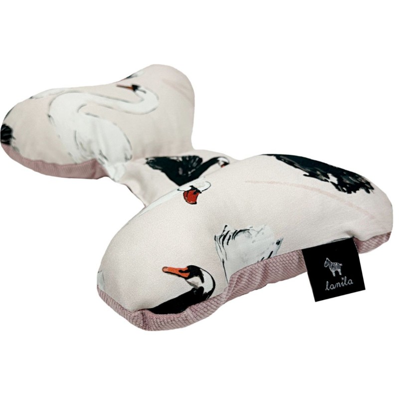 Poduszka Motylek Sepia Rose Swans powstała z tkanin i dzianin najwyższej jakości – do jej produkcji wykorzystana została przyjemna w dotyku naturalna bawełna satynowa oraz delikatna dzianina Velvet, która nadaje jej puszystości i miękkości. Zarówno materiały, jak i wypełnienie z włókien silikonowych są hypoalergiczne i bezpieczne – polskie tkaniny posiadają certyfikat OEKO-TEX Standard 100.