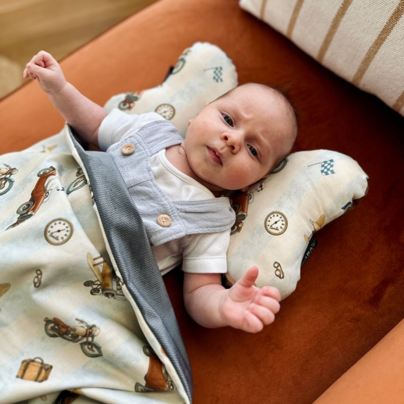 Ergonomiczny kształt i przemyślany projekt to atuty, które sprawiają, że poduszka motylek do wózka i fotelika, zapewnia wygodę i spokojny sen w czasie samochodowych przejażdżek oraz spacerów.