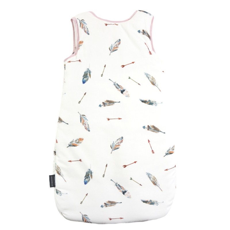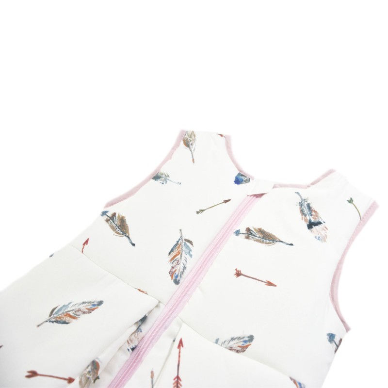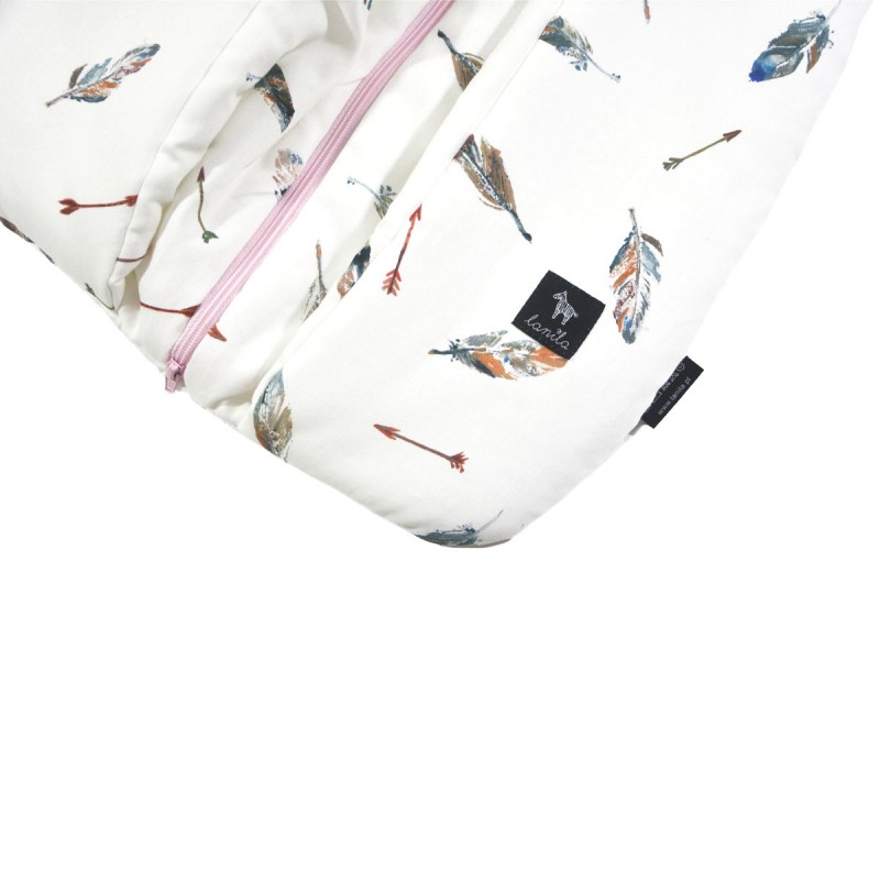 Dzięki specjalnemu klinowi w przedniej części śpiworka Dziecko może swobodnie poruszać nóżkami w czasie leżenia oraz snu. Miejsca, w których śpiworek styka się z rączkami oraz szyją Dziecka wykończone zostały stylową, a zarazem bardzo miękką wypustką bawełnianą, która nie powoduje podrażnień. Dodatkowo górna część zamka posiada specjalną zakładkę, która zabezpiecza przed zahaczeniem Malucha zapinanym zamkiem.