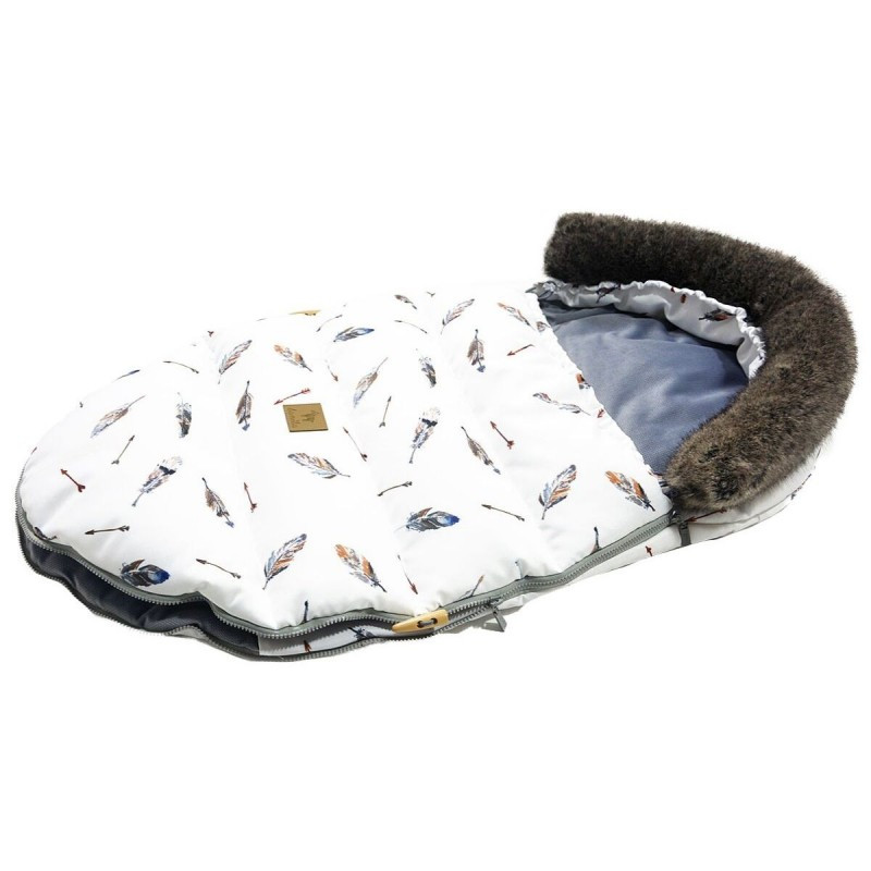 Śpiworek dziecięcy posiada także zintegrowany, ciepły kaptur wykończony stylowym, sztucznym futrem. Futro zapinane jest na małe guziki, dzięki czemu można go całkowicie odczepić. Kaptur posiada również sznurową gumę, dzięki czemu można regulować jego wielkość.