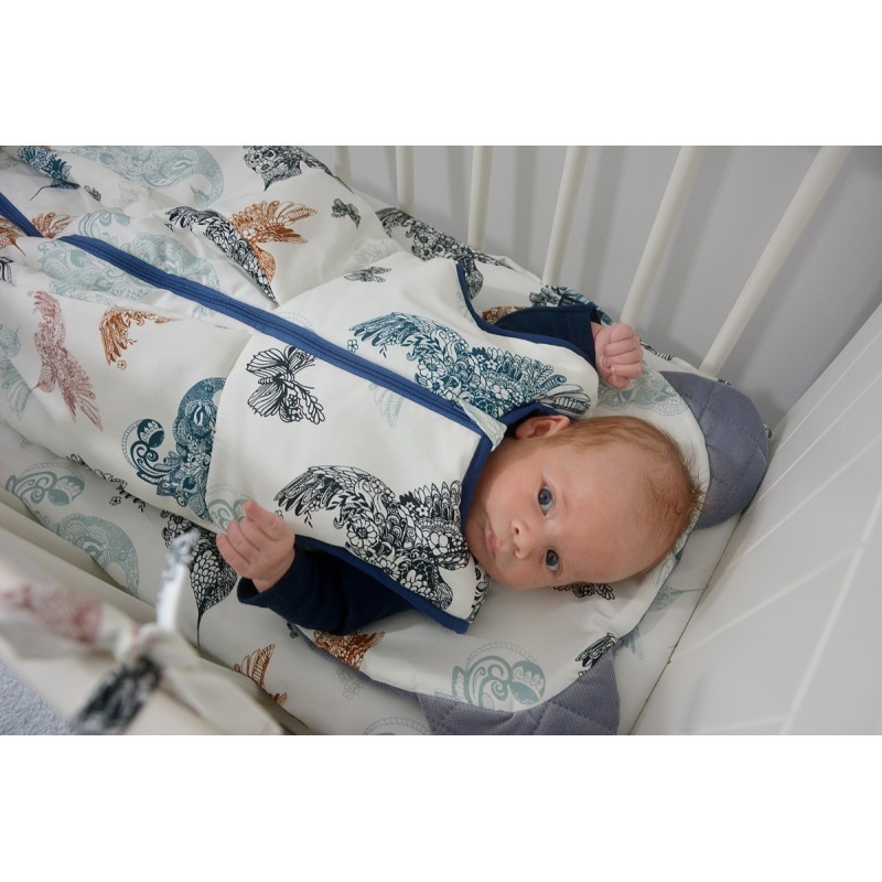 Poduszka dziecięca Mandala Birds z serii Velvet została uszyta z tkanin przebadanych pod kątem bezpieczeństwa – wypełnienie stanowi hypoalergiczny puch, a bawełna oraz nadruk posiadają certyfikat bezpieczeństwa OEKO-TEX Standard 100.