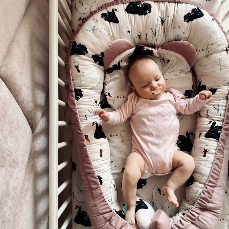 Poduszka dziecięca Sepia Rose Swans z serii Velvet została uszyta z tkanin przebadanych pod kątem bezpieczeństwa – wypełnienie stanowi hypoalergiczny puch, a bawełna oraz nadruk posiadają certyfikat bezpieczeństwa OEKO-TEX Standard 100.