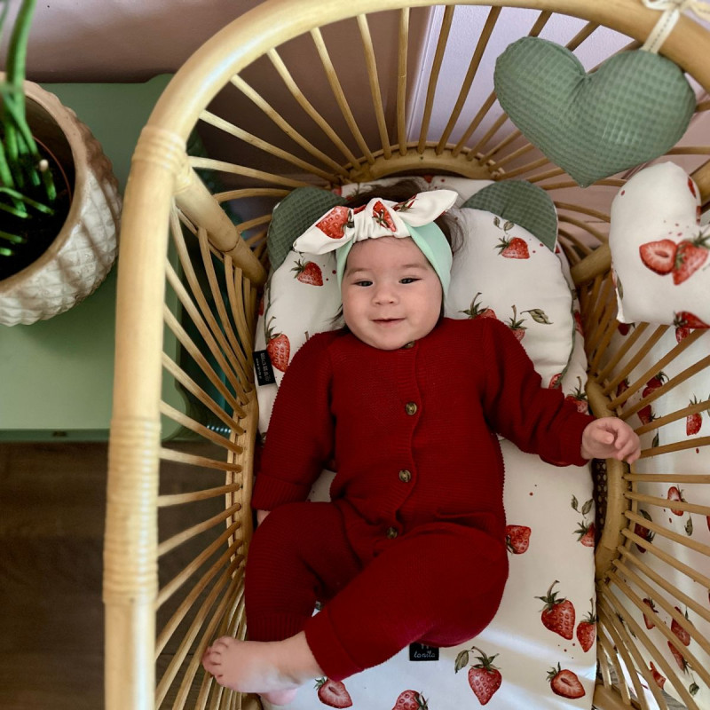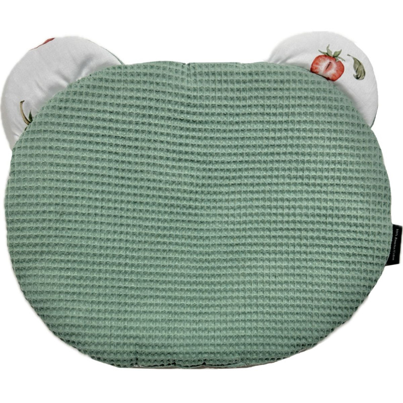 Dwustronna poduszka dziecięca Wafel z kolekcji I Love Strawberry to pierwsza, bardzo płaska, a zarazem miękka poduszka dla Twojego Malucha. Zawadiackie uszy z naturalnej bawełny nadają całości uroku oraz mogą służyć jako ulubiony gryzaczek dla Niemowlaka.