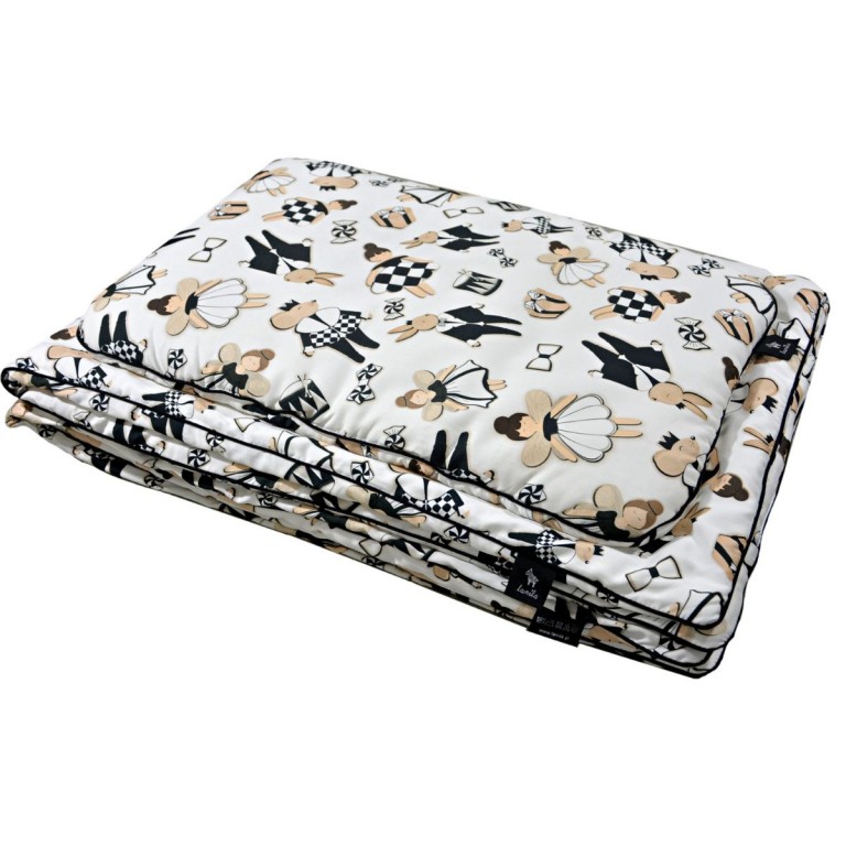 Bawełniany komplet pościeli z wypełnieniem 100x135cm to bezpieczna i niezwykle wygodna alternatywa dla tradycyjnej poszewki na kołdrę. W skład kompletu wchodzi miękka – bezpieczna dla dzieci poduszka oraz kołderka z wszytym lekkim, antyalergicznym wypełnieniem.