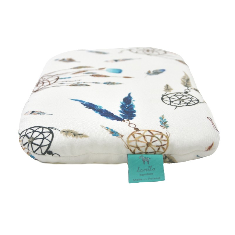 Poduszka bambusowa dla dzieci marki Lanila wypełniona jest antyalergicznym puchem – jego cienka warstwa powoduje, że poduszeczka jest płaska, a zarazem bardzo sprężysta, gwarantując niemowlęciu spokojny sen i odpowiednią pozycję w łóżeczku.