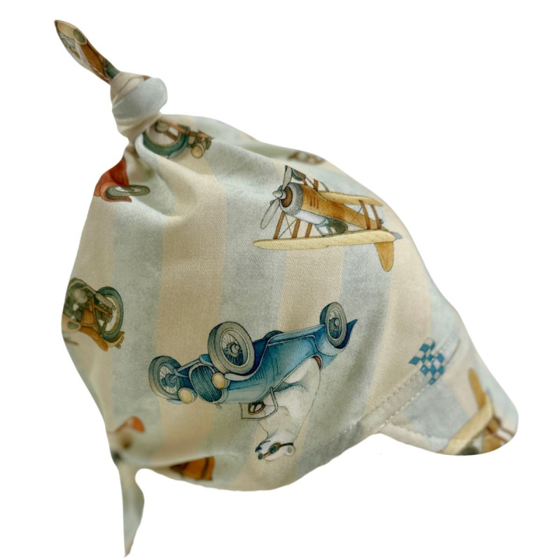 Bawełniana Chusta na głowę z daszkiem Retro Ride w całości wykonana została z miękkiej, atestowanej bawełny satynowej z trwałym nadrukiem. Idealnie ochroni główkę dziecka przed przegrzaniem, a dzięki wykorzystaniu bardzo miękkiej tkaniny nie spowoduje podrażnień oraz zapobiegnie przetarciom nawet na wrażliwej skórze Dziecka.