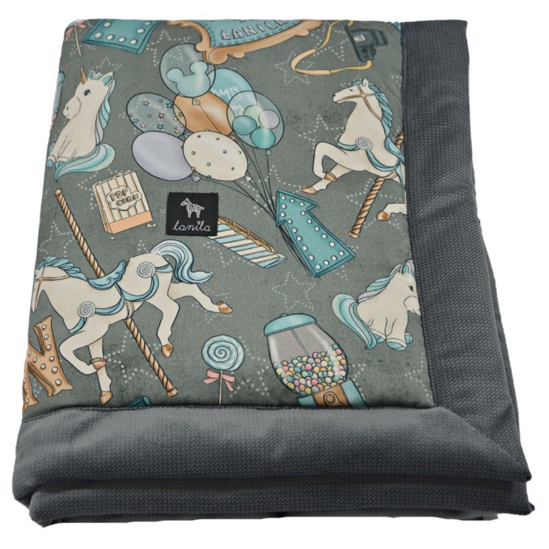 Niezwykle miękki kocyk Velvet Dark Grey Baby Boy 60x70cm sygnowany logo Lanila. Kocyk wykonany został z wysokogatunkowej bawełny oraz delikatnego w dotyku, eleganckiego Velvetu.