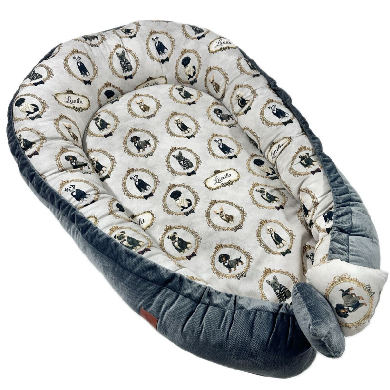 Niezwykle stabilny oraz funkcjonalny kokon dla noworodków i niemowląt Lord Dog. Kokon wykonany został z najwyższej jakości bawełny satynowej oraz wysokiej jakości dzianiny Velvet.