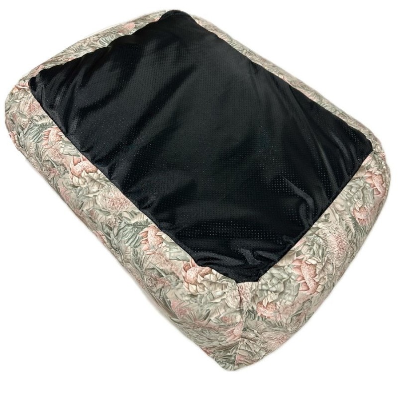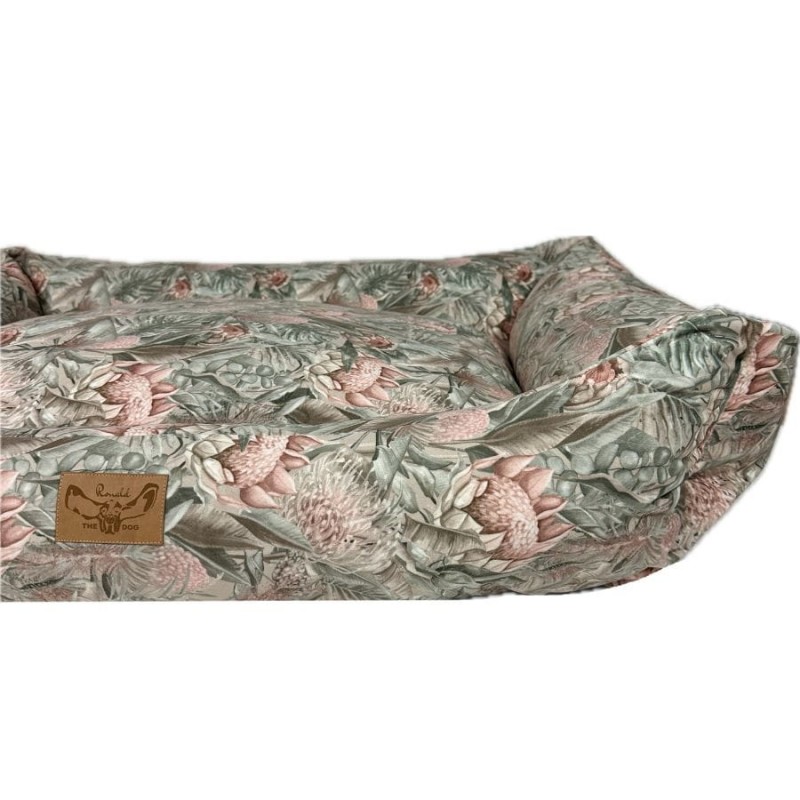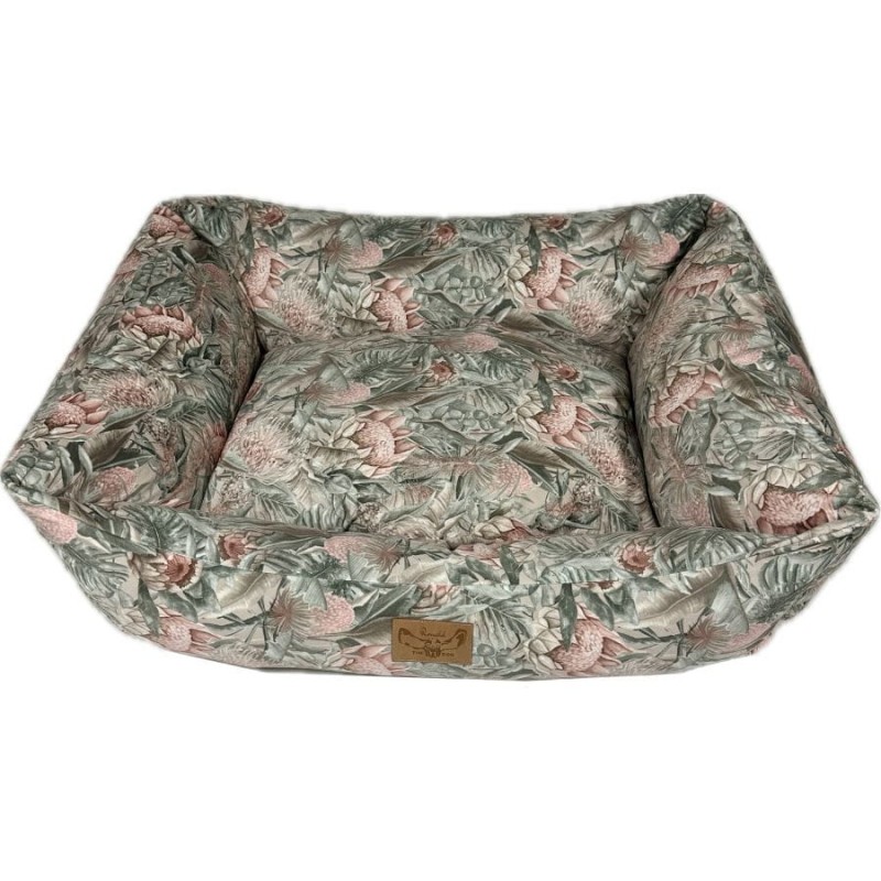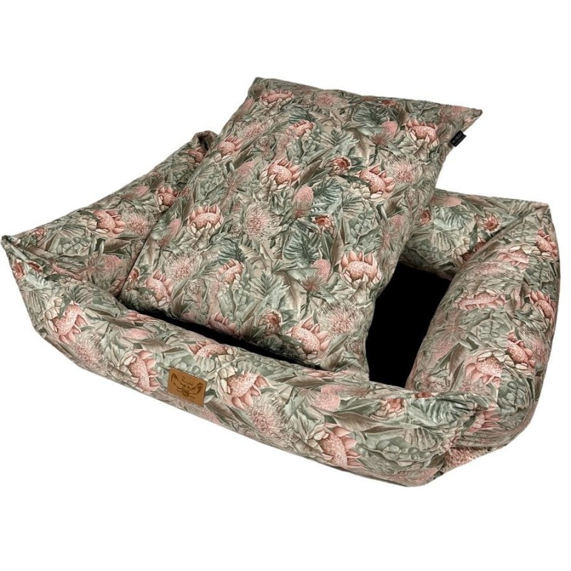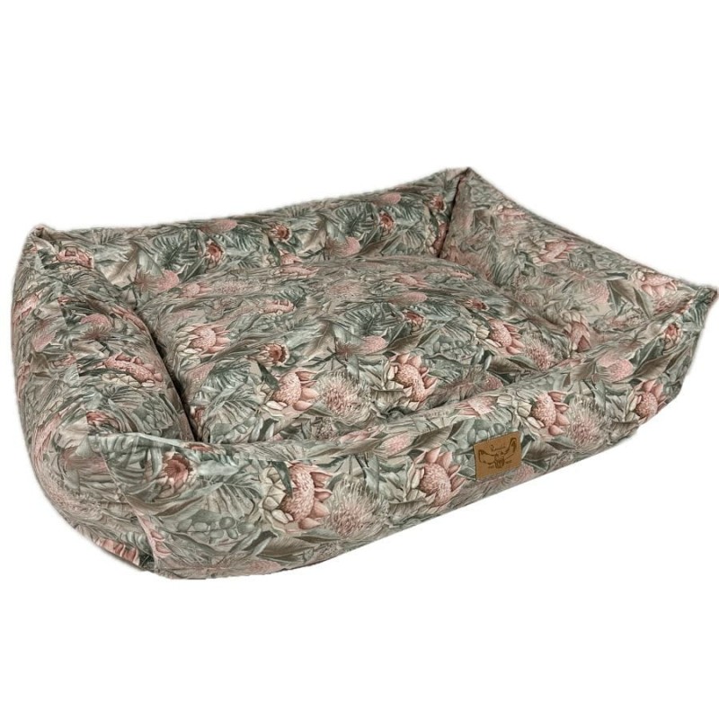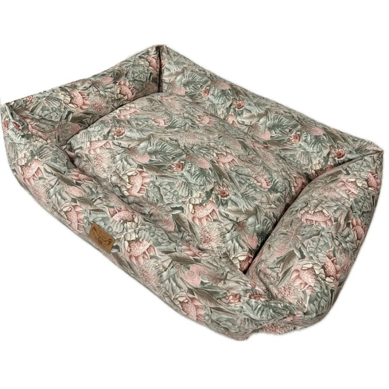 Niezwykle stabilne oraz funkcjonalne Legowisko dla dużego psa z kolekcji Botanic. Kojec wykonany został z najwyższej jakości wytrzymałej tkaniny welurowej zadrukowanej autorskim wzorem.