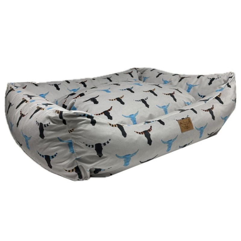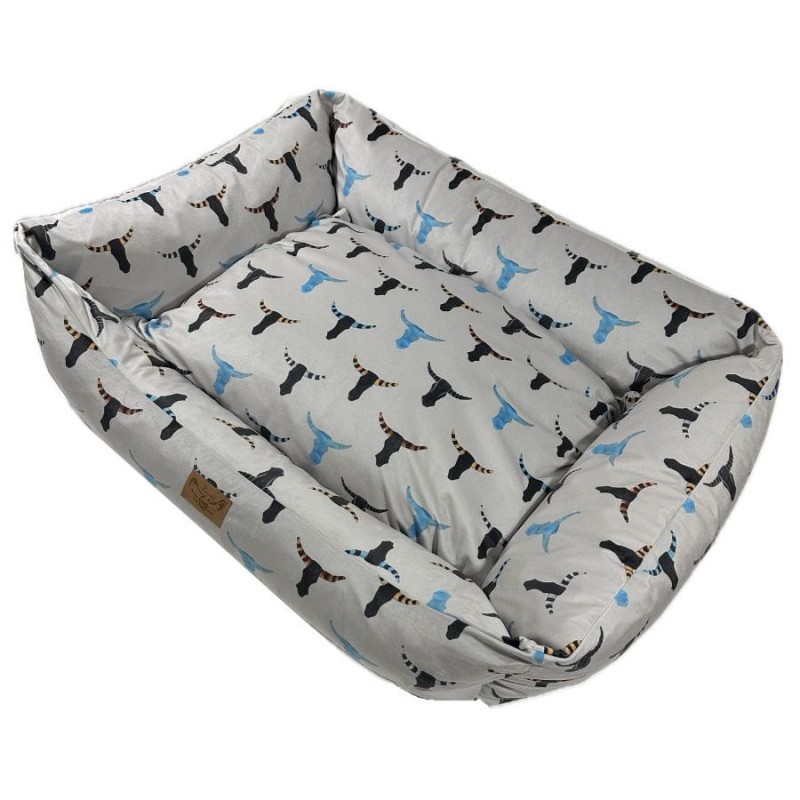 Wykonane z najwyższej jakości, trwałych materiałów tapicerskich typu welur, nasz kojec dla dużego psa zapewnia trwałość i odporność na codzienne zużycie. Dodatkowo materiał ten zadrukowany został naszymi autorskimi wzorami, co nadaje całości niesamowitego designu. Dzięki temu legowiska na żywo prezentują się bardzo stylowo i przypominają bardziej designerski mebel niż zwykły kojec dla psa, płynnie integrując legowisko z Twoją przestrzenią życiową.