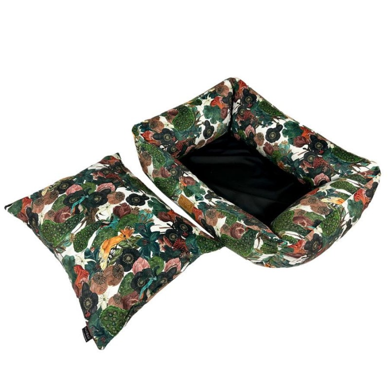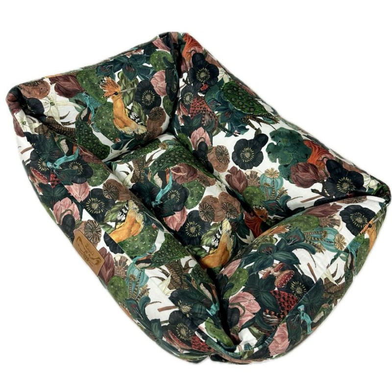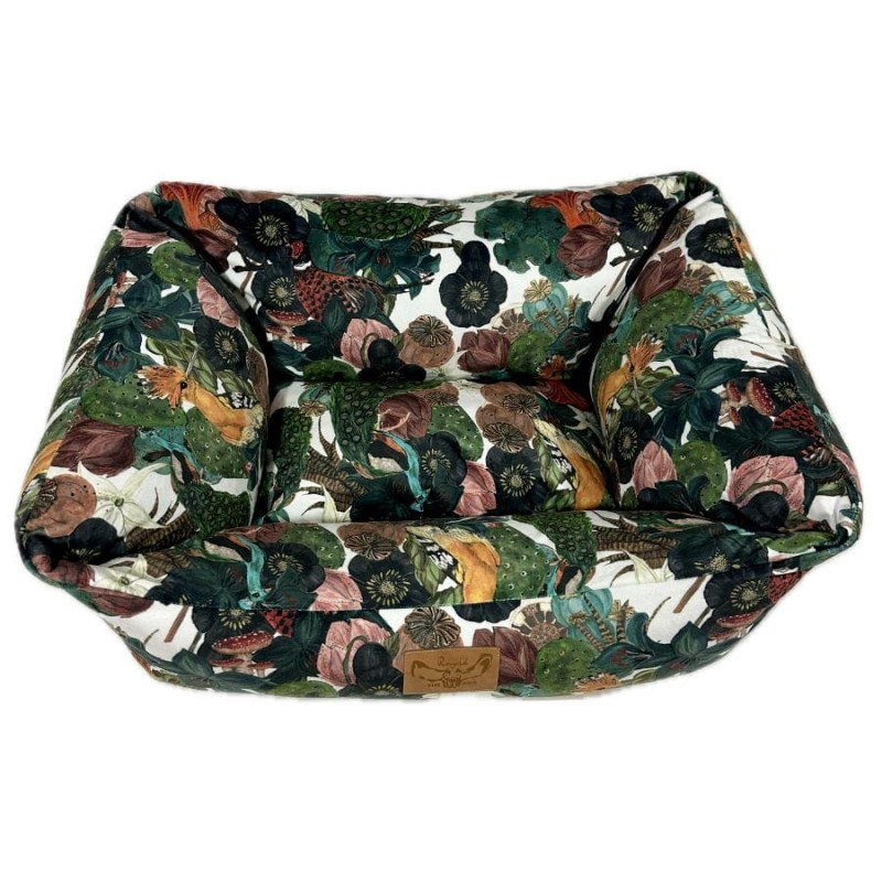 Wykonane z najwyższej jakości, trwałych materiałów tapicerskich typu welur, nasz kojec dla dużego psa zapewnia trwałość i odporność na codzienne zużycie. Dodatkowo materiał ten zadrukowany został naszymi autorskimi wzorami, co nadaje całości niesamowitego designu. Dzięki temu legowiska na żywo prezentują się bardzo stylowo i przypominają bardziej designerski mebel niż zwykły kojec dla psa, płynnie integrując legowisko z Twoją przestrzenią życiową.