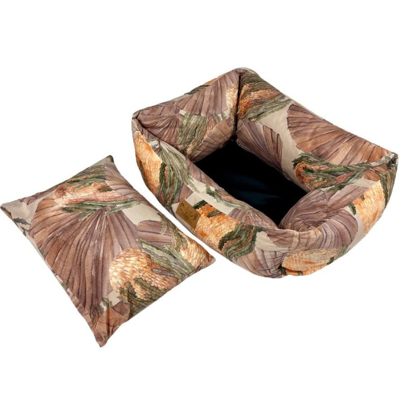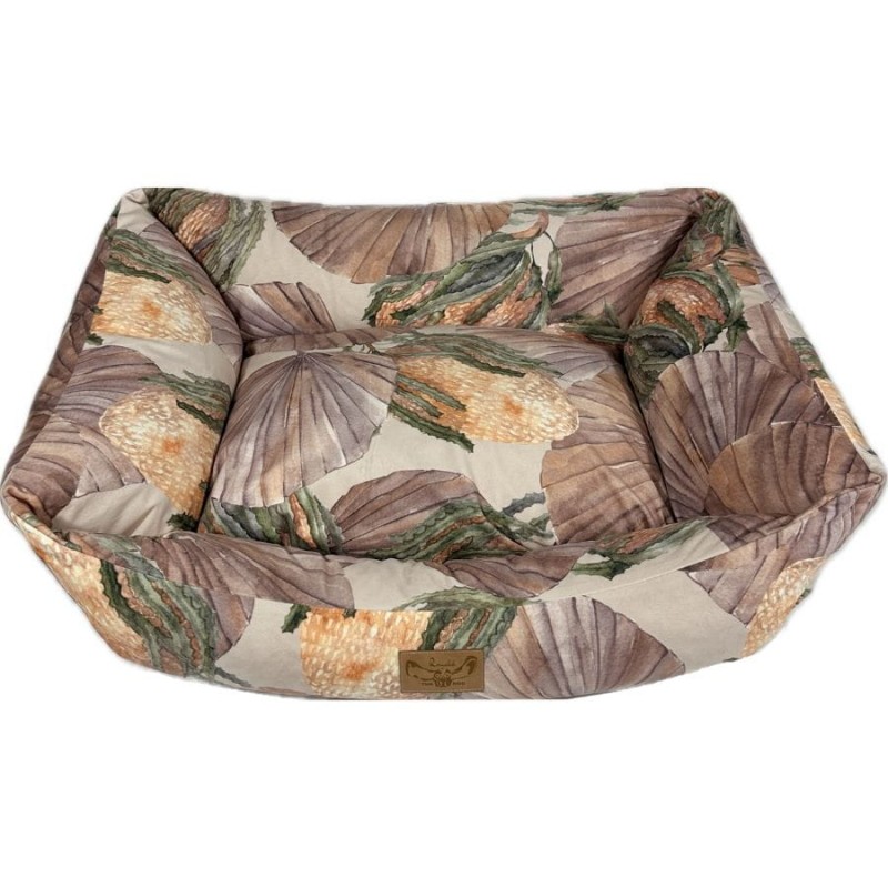 Wykonane z najwyższej jakości, trwałych materiałów tapicerskich typu welur, nasz kojec dla dużego psa zapewnia trwałość i odporność na codzienne zużycie. Dodatkowo materiał ten zadrukowany został naszymi autorskimi wzorami, co nadaje całości niesamowitego designu. Dzięki temu legowiska na żywo prezentują się bardzo stylowo i przypominają bardziej designerski mebel niż zwykły kojec dla psa, płynnie integrując legowisko z Twoją przestrzenią życiową.