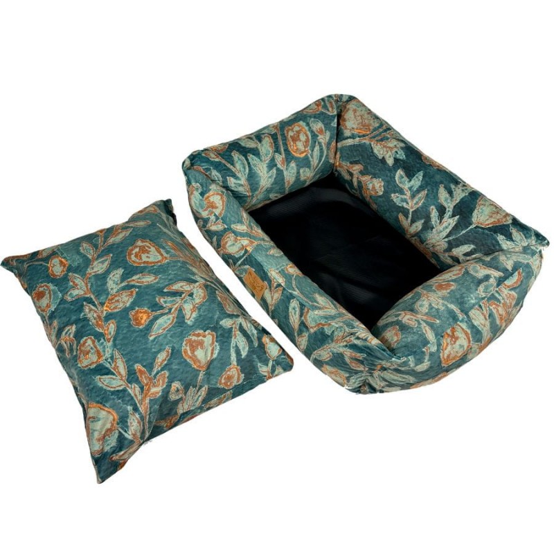 Wykonane z najwyższej jakości, trwałych materiałów tapicerskich typu welur, nasz kojec dla dużego psa zapewnia trwałość i odporność na codzienne zużycie. Dodatkowo materiał ten zadrukowany został naszymi autorskimi wzorami, co nadaje całości niesamowitego designu. Dzięki temu legowiska na żywo prezentują się bardzo stylowo i przypominają bardziej designerski mebel niż zwykły kojec dla psa, płynnie integrując legowisko z Twoją przestrzenią życiową.
