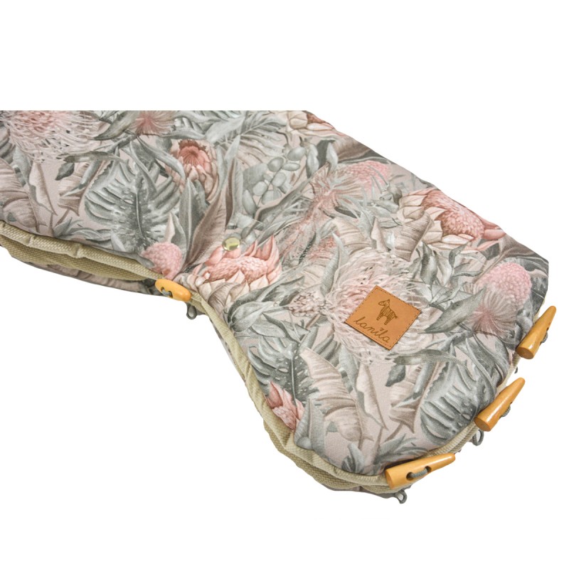 Wodoodporna Mufka do Wózka Botanic to oryginalne wyposażenie pozwalające ochronić dłonie w czasie prowadzenia dziecięcego wózka. Mufka zabezpiecza dłonie przed chłodem i deszczem. Może być zamontowana na stałe do drążka wózków spacerowych i gondoli.