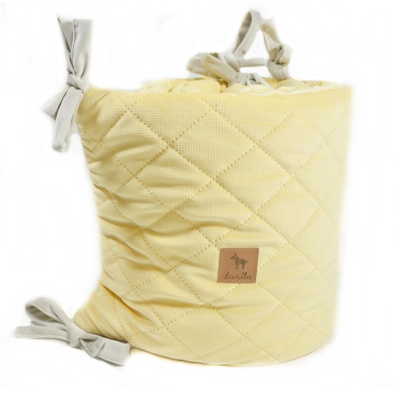 Elegancki, stylowo pikowany ochraniacz do łóżeczka 60x120cm Banana zapewni najmłodszym pełne bezpieczeństwo i stanie się wyjątkową ozdobą dziecięcego pokoju. Specjalne kokardki zapewniają sprawny i szybki montaż do szczebelków w zaledwie kilka chwil.
