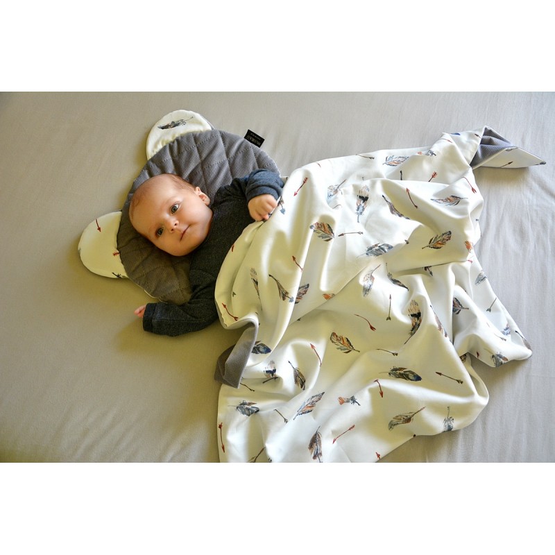Poduszka dla Niemowląt Miś idealnie nadaje się do spania w gondolispacerówce lub w łóżeczku. Dzięki płaskiemu, a jednocześnie miękkiemu wypełnieniu idealnie układa się pod główką dziecka. Świetnie sprawdza się jako pierwsza poduszka dla niemowlaka. Poduszka jest dwustronna - wykonana z najwyższej jakości bawełny oraz bardzo miękkiej i delikatnej dzianiny Velvet, dzięki czemu mogą posłużyć jako ulubiony gryzaczek lub przytulanka Maluszka.