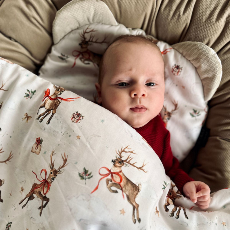 Dwustronna Poduszka Velvet z kolekcji Winter Wishes to pierwsza, bardzo płaska, a zarazem miękka poduszka dla Twojego Malucha. Zawadiackie uszy z Velvetu i bawełny mogą służyć jako ulubiony gryzaczek Niemowlaka.