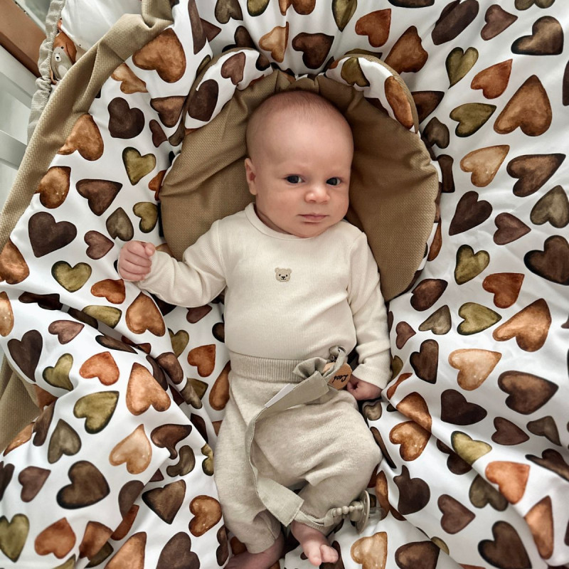 Poduszka dziecięca Chocolate Pralines z serii Velvet została uszyta z tkanin przebadanych pod kątem bezpieczeństwa – wypełnienie stanowi hypoalergiczny puch, a bawełna oraz nadruk posiadają certyfikat bezpieczeństwa OEKO-TEX Standard 100.