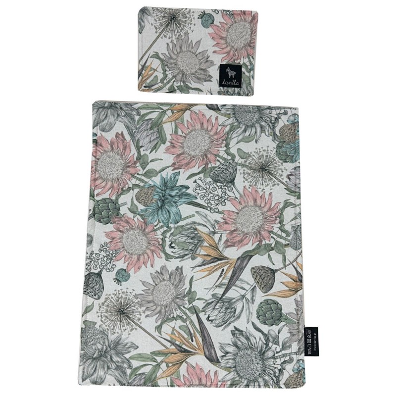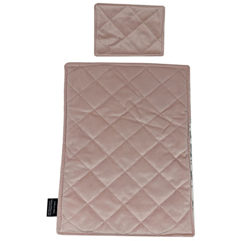 Komplet pościeli dla lalek marki Lanila uszyty został z najwyższej jakości bawełny z nadrukowanymi autorskimi wzorami oraz z pikowanym, bardzo miękkim velvetem. Wypełnienie to bardzo cienka antyalergiczna, silikonowa włóknina.