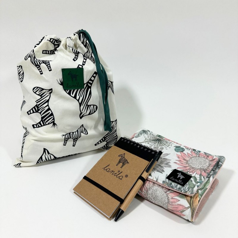 Każdy komplet pościeli dla lalek zapakowany jest w elegancki a zarazem praktyczny, bawełniany worek z logo Lanila, który może być przydatny do chowania ulubionych skarbów. Dodatkowo do kompletu dokładamy ekologiczny notesik z logo Lanila wraz z długopisem, dlatego całość to idealny pomysł na prezent dla każdej małej Księżniczki.