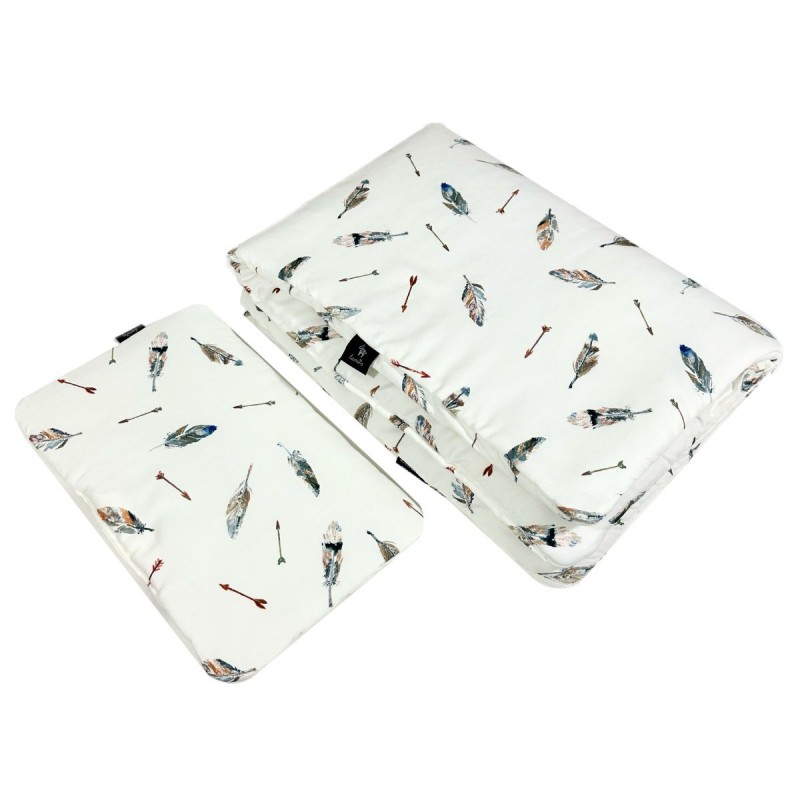 Bawełniany komplet pościeli z wypełnieniem to bezpieczna i wygodna alternatywa dla tradycyjnych poszewek. W skład kompletu wchodzi poduszka oraz kołderka z wszytym lekkim, antyalergicznym wypełnieniem.