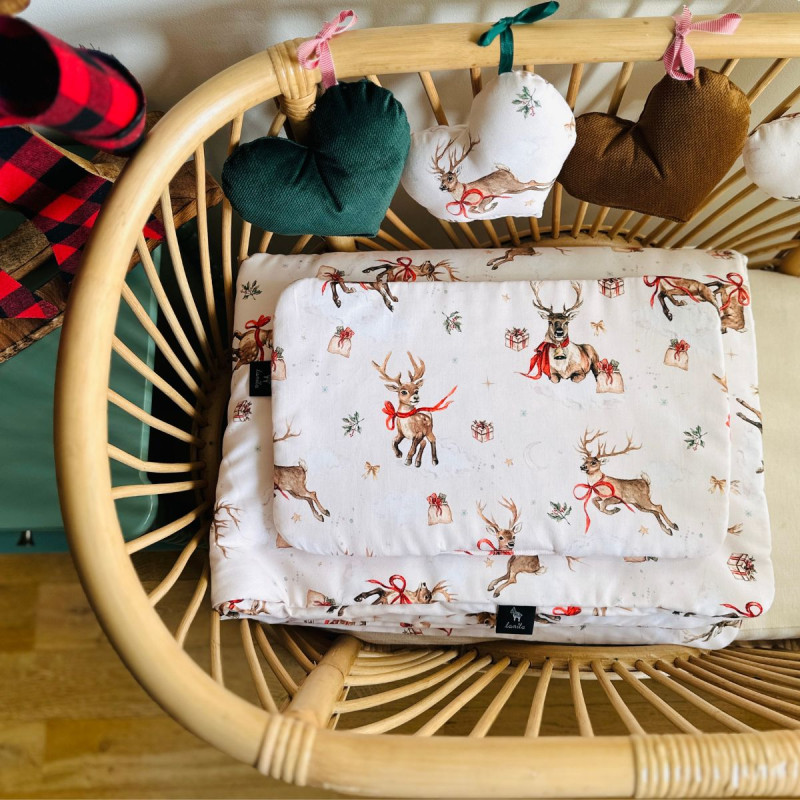 Bawełniany komplet pościeli z wypełnieniem to alternatywa dla zwykłych poszewek na pościel. Dzięki wszytemu wypełnieniu całość można wrzucić do pralki i wyprać nie tylko same poszewki, jak to bywa w tradycyjnych kołdrach ale również wypełnienie, zapewniając tym samym maksymalną czystość. Nie trzeba się również martwić czy wielkość poszewek będzie pasowała do kołdry i poduszki, którą akurat posiadacie – tutaj wypełnienie jest wszyte od wewnątrz do tkaniny, więc nie trzeba posiadać ani kołdry ani poduszki. Całość dostajecie w komplecie. Jest to fantastyczny pomysł na ważne okazje, jak prezent na chrzest czy wyprawka dla noworodka.