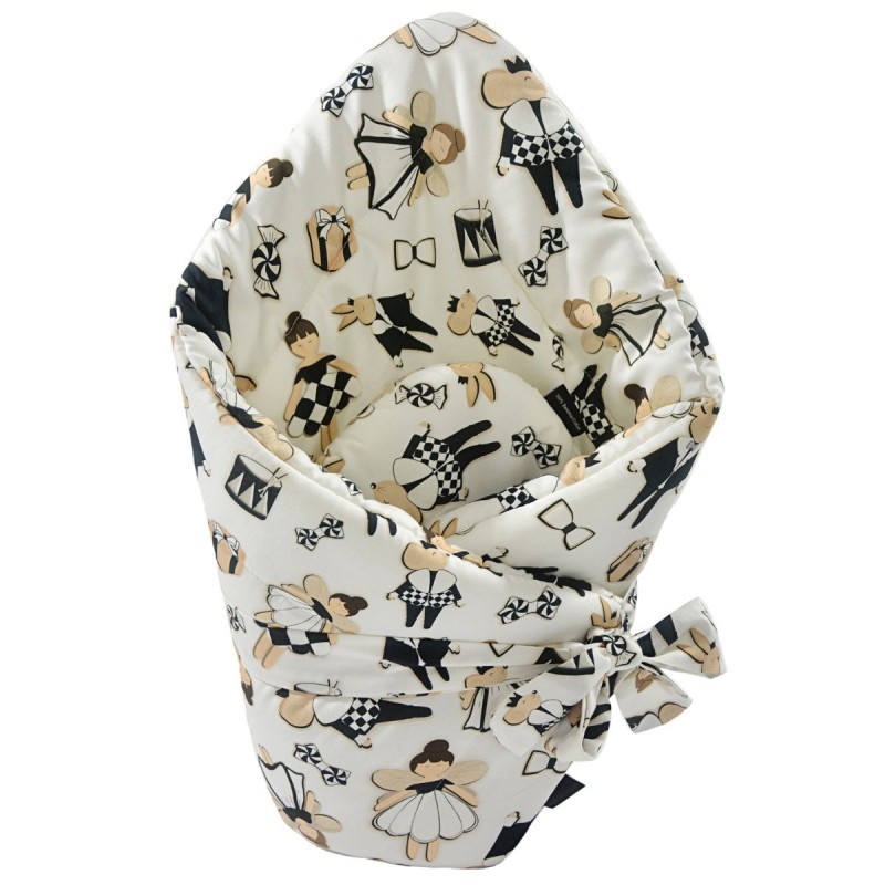 Piękny, dwustronny rożek z kolekcji Ladies and Gentlemen 75x75 cm, zapewni dziecku komfort, ciepło i bezpieczeństwo już od pierwszych chwil życia. Gustowny becik marki Lanila to idealny prezent dla przyszłej mamy.