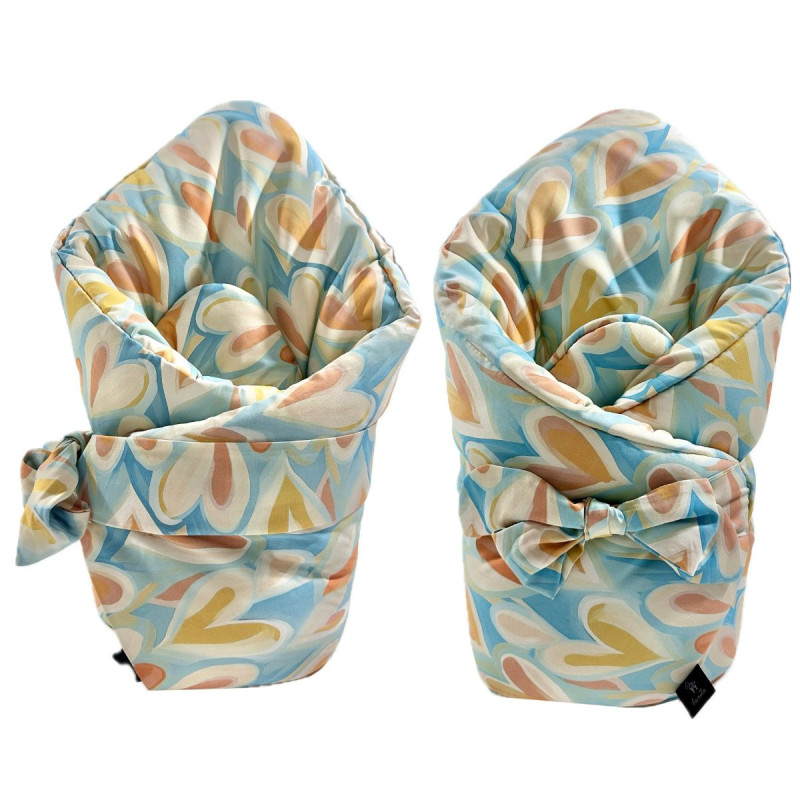 Rożek dla niemowlaka Pastel Amour z obu stron wykonany został z miękkiej i delikatnej bawełny, zadrukowanej autorskim wzorem.