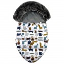 Śpiworek dziecięcy posiada także zintegrowany, ciepły kaptur wykończony stylowym, sztucznym futrem. Futro zapinane jest na małe guziki, dzięki czemu można go całkowicie odczepić. Kaptur posiada również sznurową gumę, dzięki czemu można regulować jego wielkość.