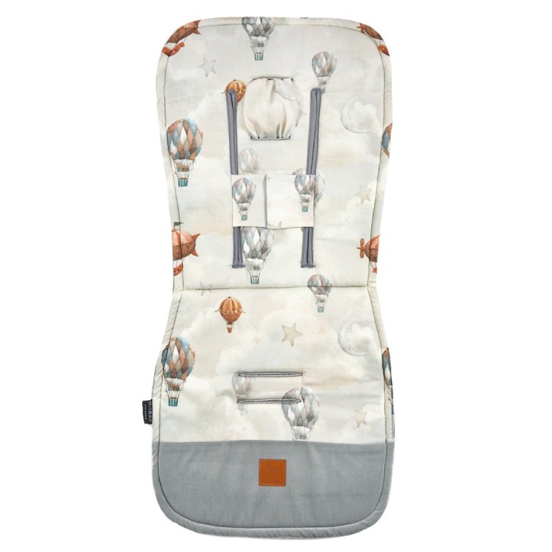 Uniwersalna i praktyczna wkładka do wózka Up in the Air, ochraniacze na pasy, pasek oraz bezpieczna poduszka motylek antywstrząsowy – podstawowy zestaw każdej wyprawy małej i dużej. Z produktami marki Lanila każda wycieczka będzie przyjemnością.